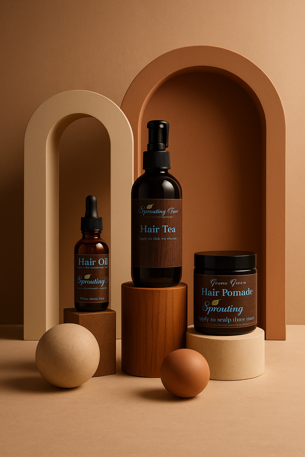 Textured hair loses moisture faster because curls make it harder for natural oils to travel down the strand. That’s why hydration must be intentional and layered. Our Hair Tea adds moisture, our Hair Oil seals the cuticle, and our Pomade locks it all in — helping curls stay soft, defined, and protected longer.